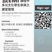 【EMI師資培訓】敬邀參與EMI教師培訓增能活動資訊