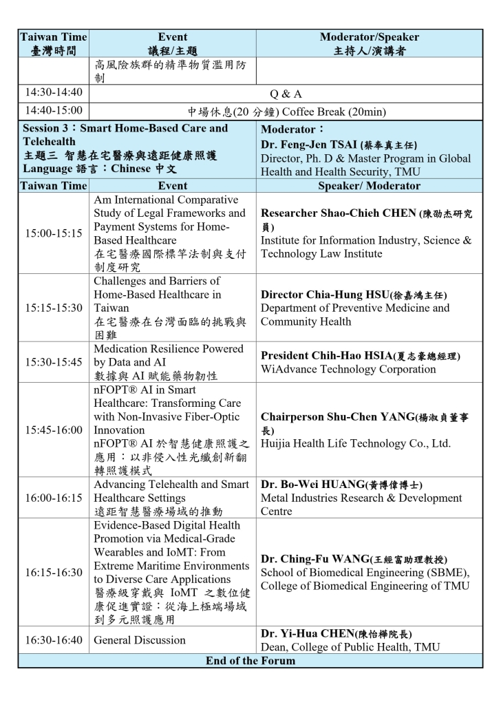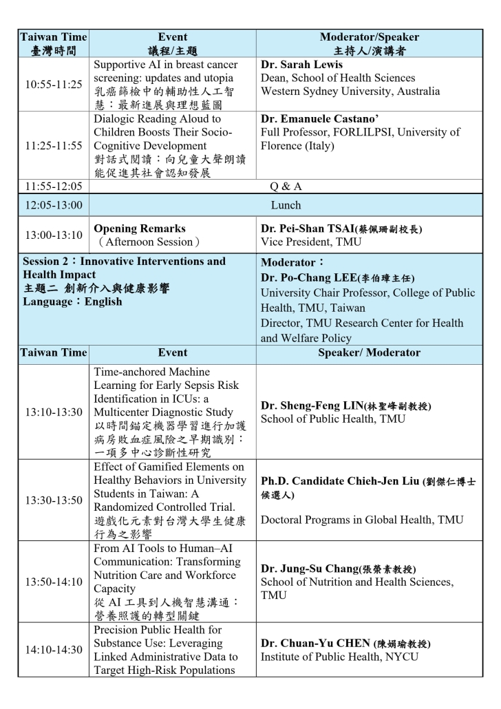 - 會議前二場次以英文進行、第三場次以中文進行。